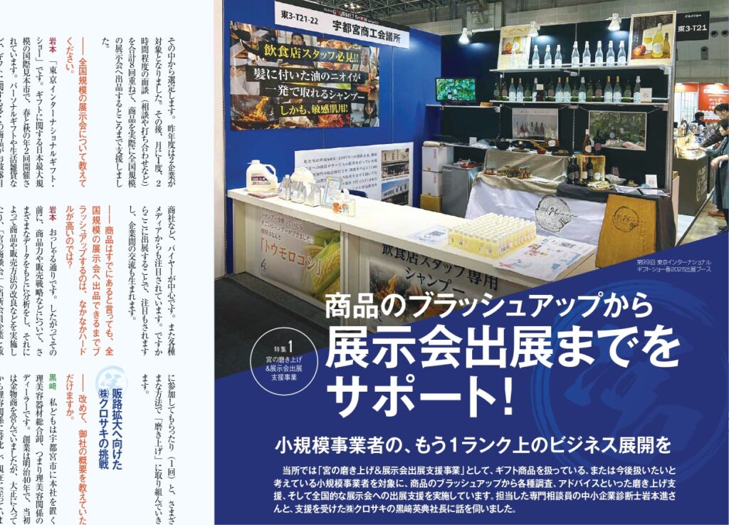 記事内では、開発したオリジナルシャンプー「清五郎」の誕生背景や、今後の事業展開、マーケティング戦略、展示会を通じた新たな出会いや反応についても詳しく触れていただきました。実際にアンケート結果から得られたユーザー層や、容器開発の進行状況など、今後の製品展開への手応えも大きな収穫となっております。